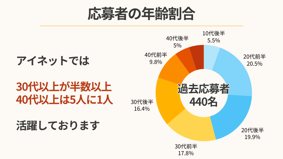 アイネットでは、最低基準を最高報酬率に設定し、経験・実績・稼働量などの条件に左右されず、誰でも高報酬率からスタートできる仕組みを採用しています。