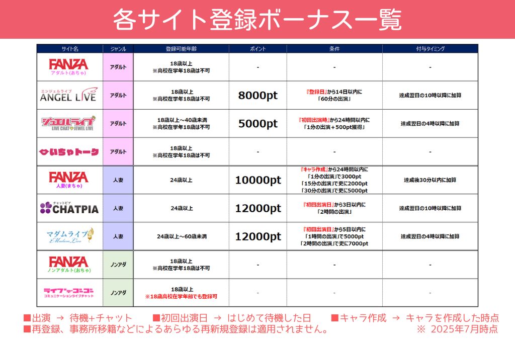登録ボーナス一覧